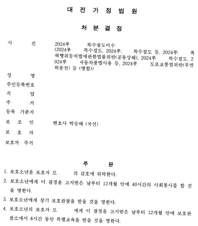 그 결과 다행히 보호소년은 다시 부모님 곁으로 돌아갈 수 있었습니다. 소년분류심사원에서의 생활이 나쁘지 않았고 다수의 피해자와 합의한 점 및 보호자의 감호 의지 등을 종합하여 앞으로 재비행의 우려가 낮다고 판단된 것입니다.