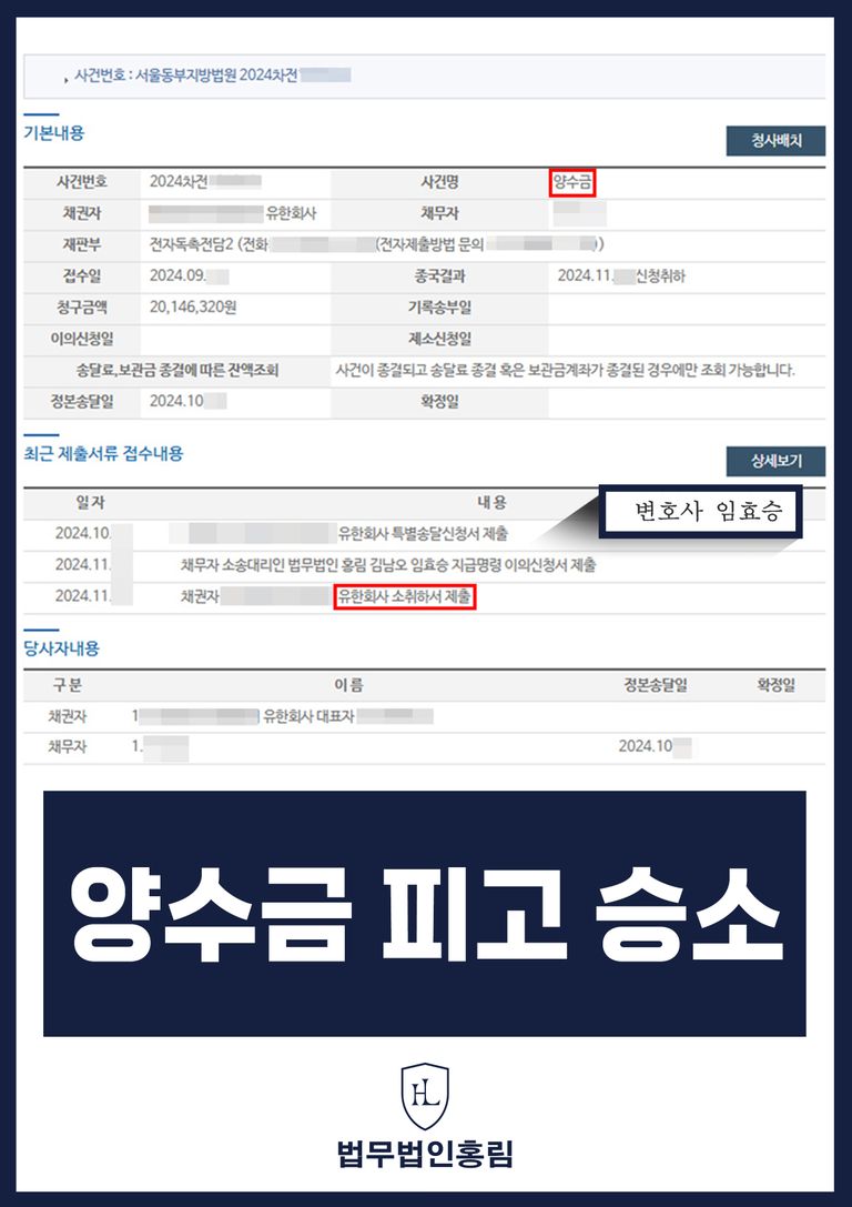 그 결과 B업체는 재판부에 '소송을 취소하는 소취하서' 를 제출하였습니다.