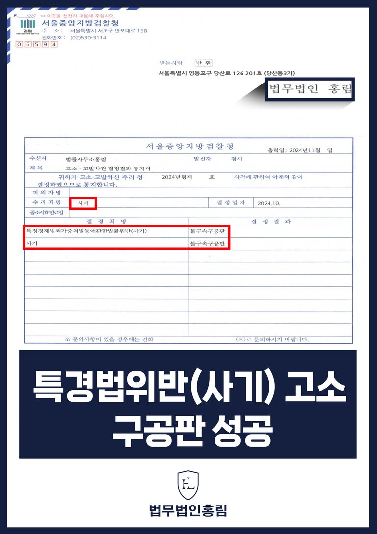 그 결과 경찰에서 B씨를 검거하였고 검찰은 변호인의 주장을 받아들여 '구공판(정식재판회부)' 결정하였습니다.