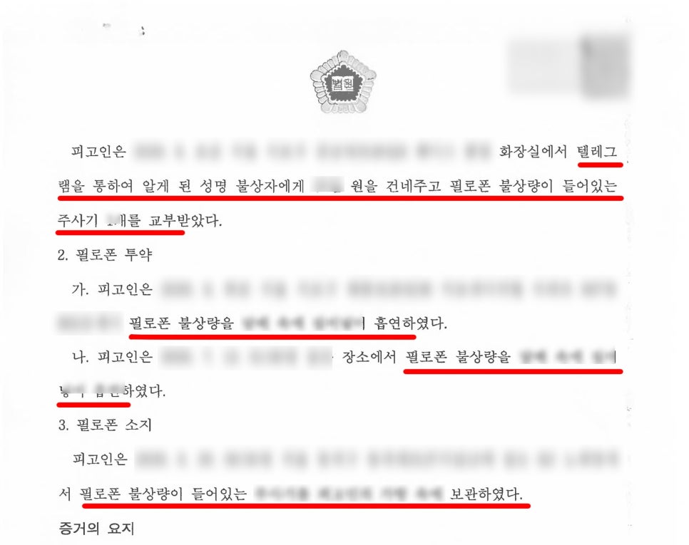 따라서 필로폰 매수·투약·소지가 문제된 상황에서는 섣불리 혼자 대응하기보다는 사건 초기부터 마약 사건에 대한 풍부한 경험을 가진 마약전문변호사의 도움을 받아 체계적이고 신중하게 대응하는 것이 가장 안전한 선택입니다.