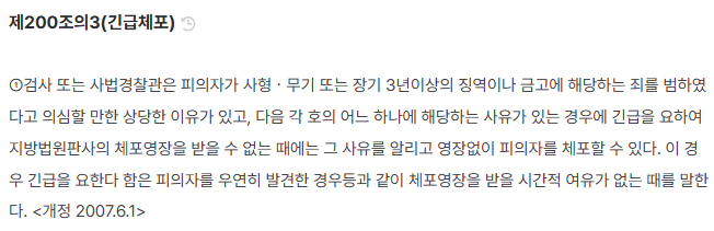 긴급체포는 중범죄일 때 가능합니다. 영장없이도 가능합니다. 검사가 신청해서 법원이 발부하는 프로세스를 건너띌 수 있습니다. 중범죄이고, 도주 또는 증거 인멸의 우려가 있을 때 가능합니다. 윤석열에 대해서도 긴급체포하라는 말이 많았습니다. 내란죄는 중범죄가 분명하고, 대통령 지위를 이용해서 증거인멸의 우려가 있었기 때문입니다.