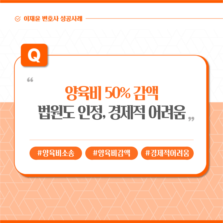 1심에서 패소한 사건을 2심에서 양육비 50% 감액이라는 결정을 받을 수 있었습니다.