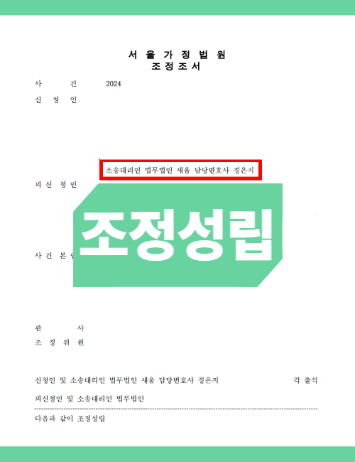 이렇게 적절하게 조금씩 조건을 조율하고 소송을 하더라도 크게 달라지지 않는다는 점을 강조하여 설득하면 더 수월하게 조건을 맞추고 더 안정적으로 빠르게 조정이 성립되게끔 유도할 수 있습니다.
