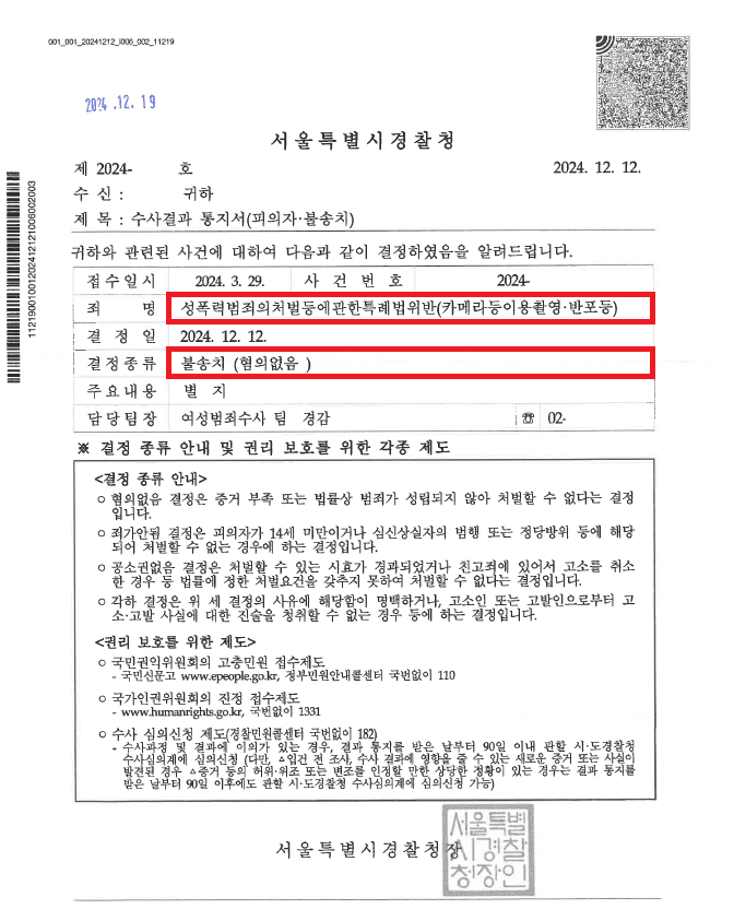 이러한 저의 조력을 바탕으로 A씨는 경찰단계에서 '불송치(혐의없음)' 결정을 받음으로써 신속하게 억울한 누명에서 벗어날 수 있었습니다.