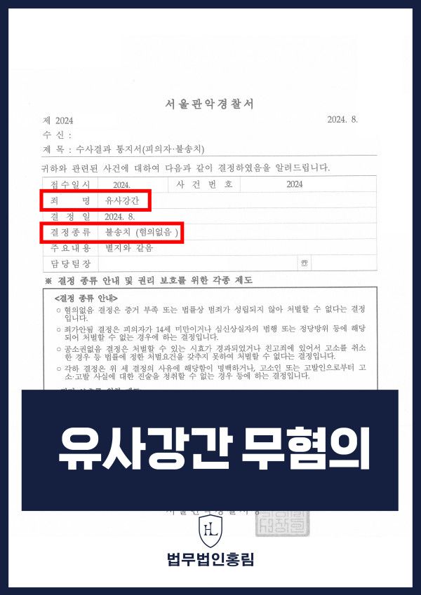그 결과 검찰은 의뢰인 A씨를 검거 후 사건을 '무혐의' 결정하였습니다.