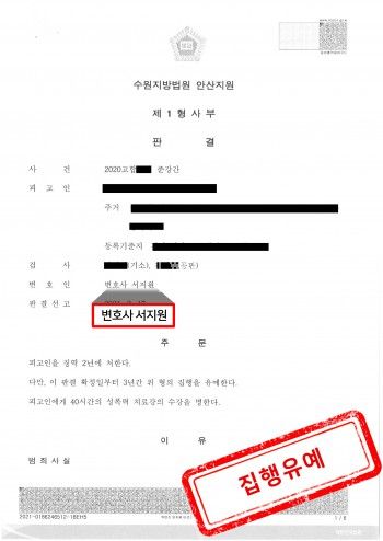 이에 재판부는 서지원 변호사의 주장을 받아들여 실형 선고가 아닌 집행유예 판결을 하였고, 신상공개 명령 및 취업제한 명령 역시 부과하지 아니하였습니다.