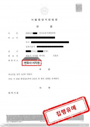 재판부는 서지원 변호사의 주장을 받아들여, A의 범죄 사실이 수십 개에 달함에도 불구하고 실형이 아닌 징역 1년, 집행유예 2년을 선고했습니다.