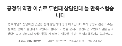 저희가 사이버 범죄 송무 사건도 담당하지만, 이커머스 분야의 공정거래 위원회 사건도 함께 처리하고 있기에 여러분들의 상황은 십분 이해합니다.