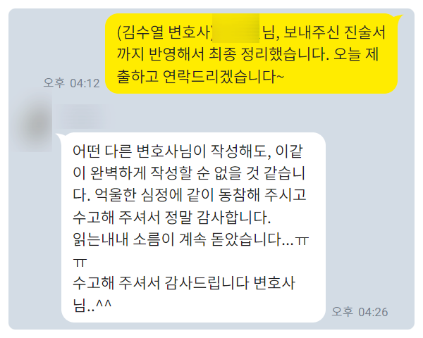 저희를 찾아주신 의뢰인분들의 감사 카톡 후기입니다. : )