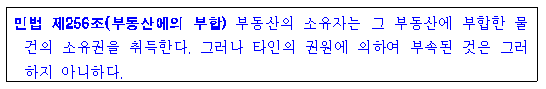 “민법 제256조에서 부동산에의 부합의 예외사유로 규정한 '권원'은 지상권, 전세권, 임차권 등과 같이 타인의 부동산에 자기의 동산을 부속시켜서 그 부동산을 이용할 수 있는 권리를 뜻한다(대법원 2005. 1. 27. 선고 2004도6289 판결, 대법원 2010. 10. 28. 선고 2010도4880 판결 등 참조). 따라서 타인 소유의 토지에 수목을 식재할 당시 토지의 소유권자로부터 그에 관한 명시적 또는 묵시적 승낙ㆍ동의ㆍ허락 등을 받았다면, 이는 민법 제256조에서 부동산에의 부합의 예외사유로 정한 '권원'에 해당한다고 볼 수 있으므로, 해당 수목은 토지에 부합하지 않고 식재한 자에게 그 소유권이 귀속된다(대법원 2023. 11. 16 선고 2023도11885 판결).”