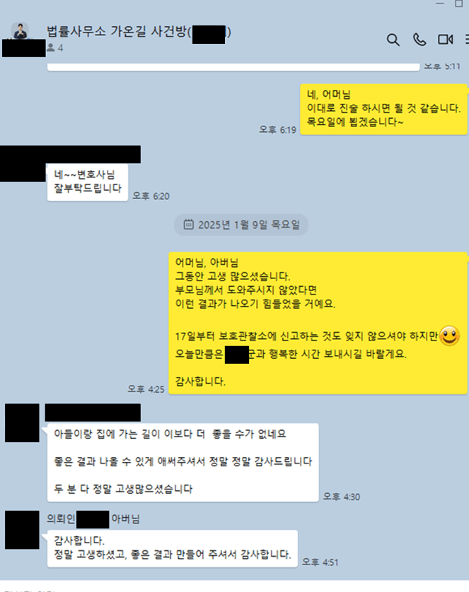 이 사건 역시 보호소년의 부모님은, 그동안 한 번도 말썽을 피우지 않은 아들의 엇나간 행동에 놀랄 새도 없이 아이가 소년분류심사원에 들어가게 되자 다급한 마음에 법률사무소 가온길을 찾아주셨습니다.
