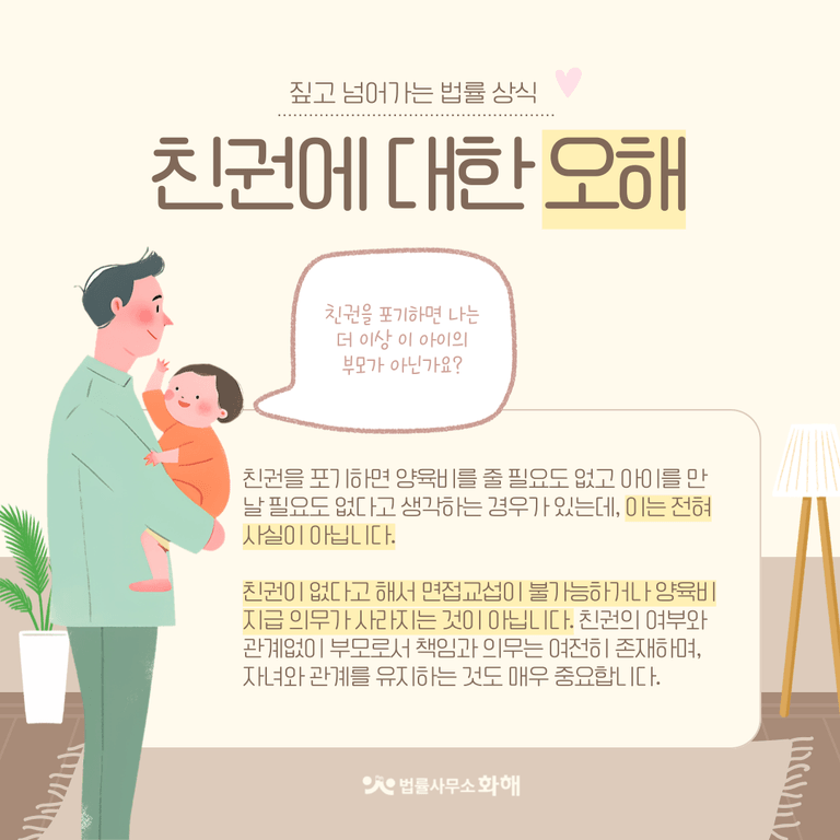 특히 아버지들 중 일부는 "친권을 포기하면 나는 더 이상 이 아이의 아버지가 아니다"라고 오해하며, 양육비를 줄 필요도 없고 아이를 만날 필요도 없다고 생각하는 경우가 있는데요. 그러나 이는 전혀 사실이 아닙니다.