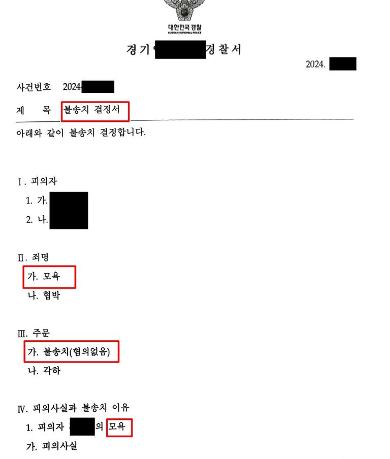 4. 결과 - 모욕죄 경찰 불송치 처분(혐의없음)