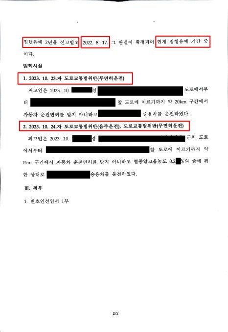 또한 위 공소장에 기재되어 있는 바와 같이 2022. 8. 17. 음주운전집행유예 전과가 확정되었으므로 집행유예기간 2년이 도과되는 시점인 2024. 8. 17.이후 집행유예 선고의 효력이 상실됩니다.