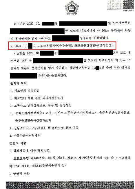 그럼에도 의뢰인은 2023년 10월경 무면허인 상태에서 또다시 음주운전을 하여 무면허운전 및 음주운전으로 수사를 받게 되었습니다.