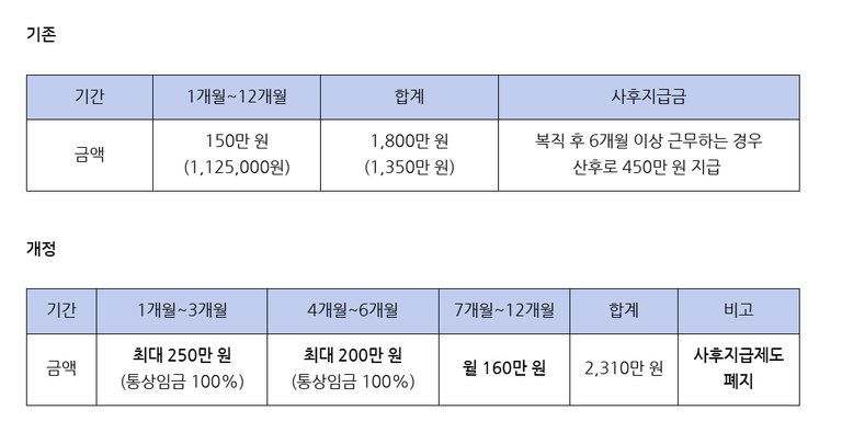 1. 육아휴직 급여의 인상 및 사후지급제도의 폐지