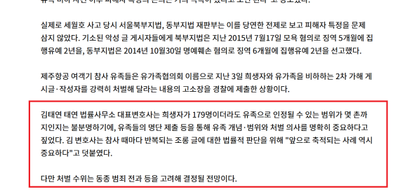 말씀드린대로 특히 태연 법률사무소의 김태연 대표 변호사님께서는 형사전문변호사이자 엔터테인먼트 전문 변호사로, 유명인 악플에 따른 명예훼손, 모욕죄를 전문적으로 해결해 오셨던 '명예훼손전문변호사'십니다.