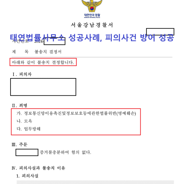 [서울강남경찰서 불송치 결정서. 태연법률사무소 성공사례]
