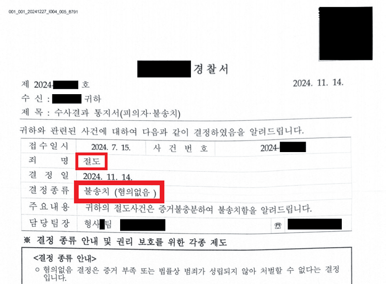 3. 법적 조력 결과 - 검찰로 넘어가기 전 불송치 처분!!