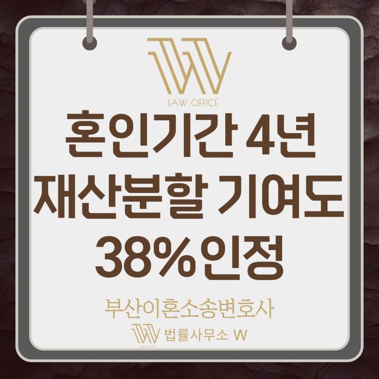 오늘은 이와 관련하여, 결혼 당시 돈이 없었으나 4년 후 이혼하면서 전체 재산의 38%를 인정받은 사례를 소개해볼까 합니다.