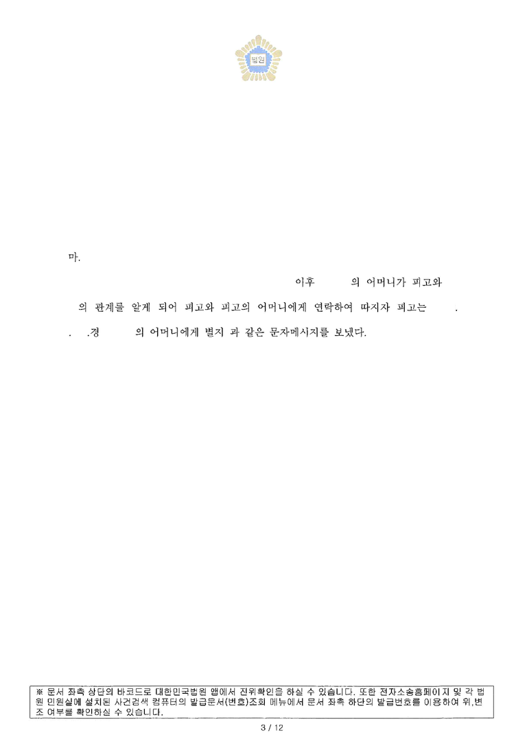 판결문에도 상간자가 배우자의 모친을 협박한 내용이 기재되며