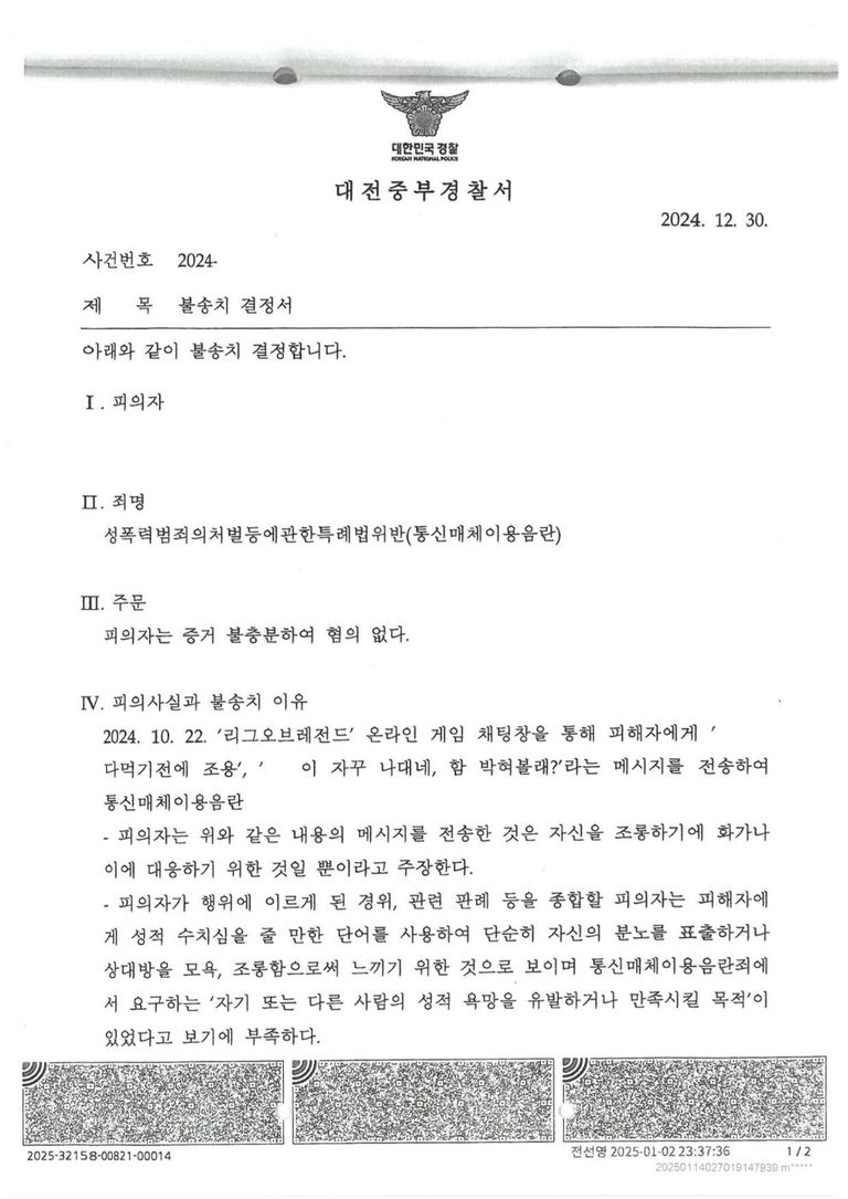 이에 경찰에서는 본 변호인의 의견대로 불송치처분을 내려주게 되었습니다.