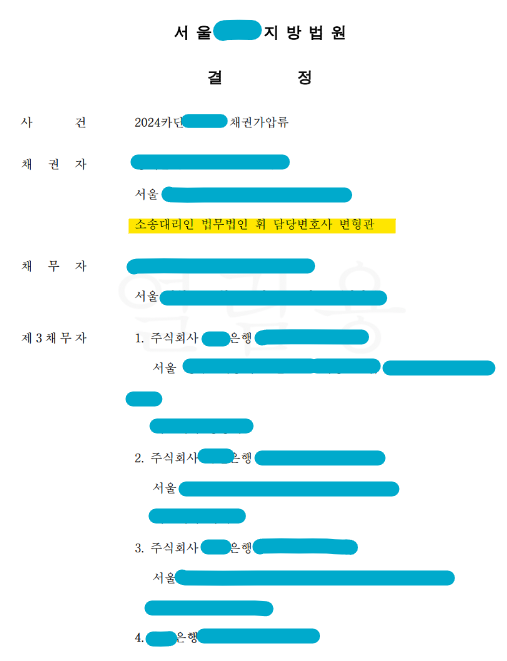 채무자의 통장을 가압류 신청하여 인용의 결과를 이끌어 낸 사례를 소개해드리고자 합니다.