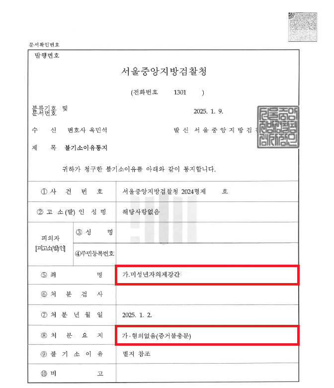 그러나 경찰은 다툼의 여지가 커 불송치할 수는 없다며 검찰로 송치하였고, 얼마 뒤 검사실에서는 추가 조사가 필요하다며 출석을 요구하였습니다.