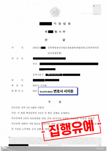 이에 피고인은 신상 정보 공개, 고지 대상도 되지 않았으며, 징역 2년 6월, 집행유예 4년의 판결을 선고 받고 구속 상태에서 풀려나게 되었습니다.