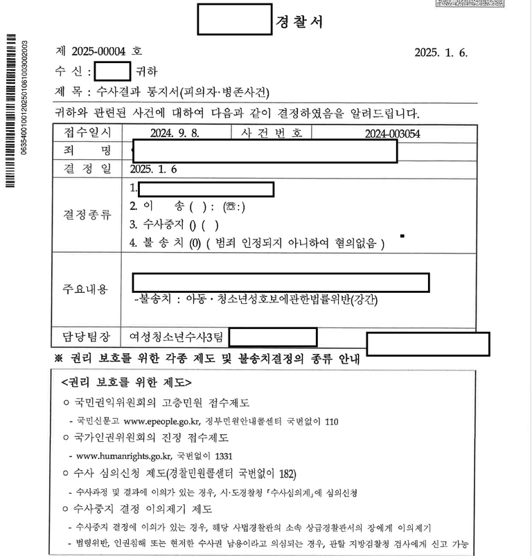하여 6개월에 걸친 수사끝에 최종 불송치 결정이 난 사안입니다.