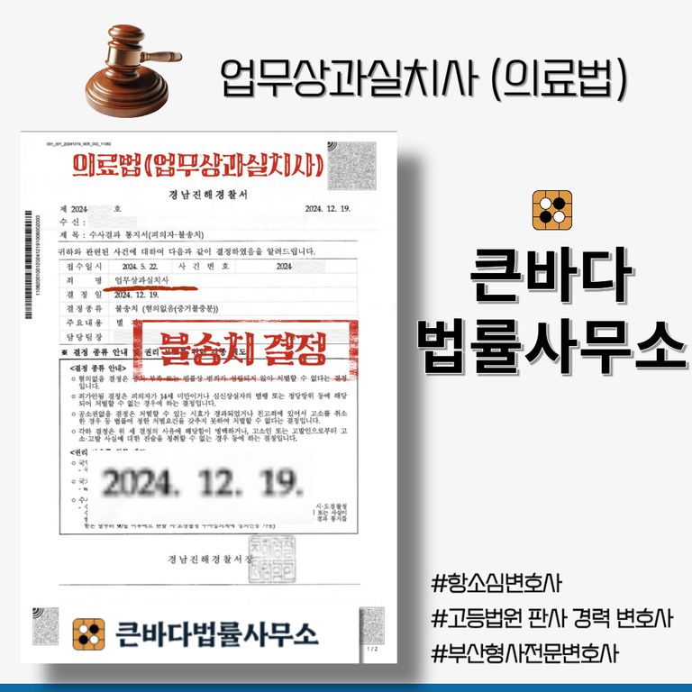의사 선생님은 큰바다 법률사무소와 함께 경찰에서 억울함을 적극적으로 소명할 수 있었고,