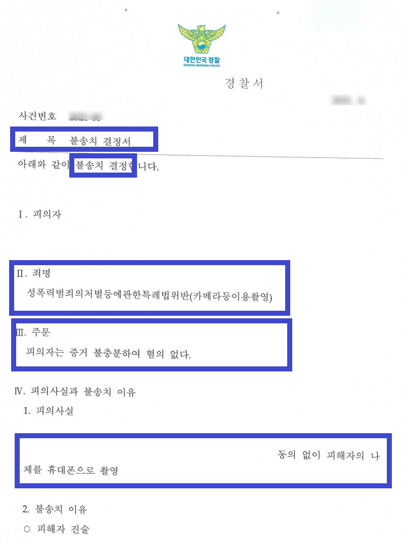 이번 사례에서는 연인 간 다툼으로 시작된 여자친구 나체 몰카 촬영 혐의에서 의뢰인이 자신의 억울함을 밝혀 "불송치" 결정을 받은 성공적인 대응 과정을 다루어 보겠습니다.