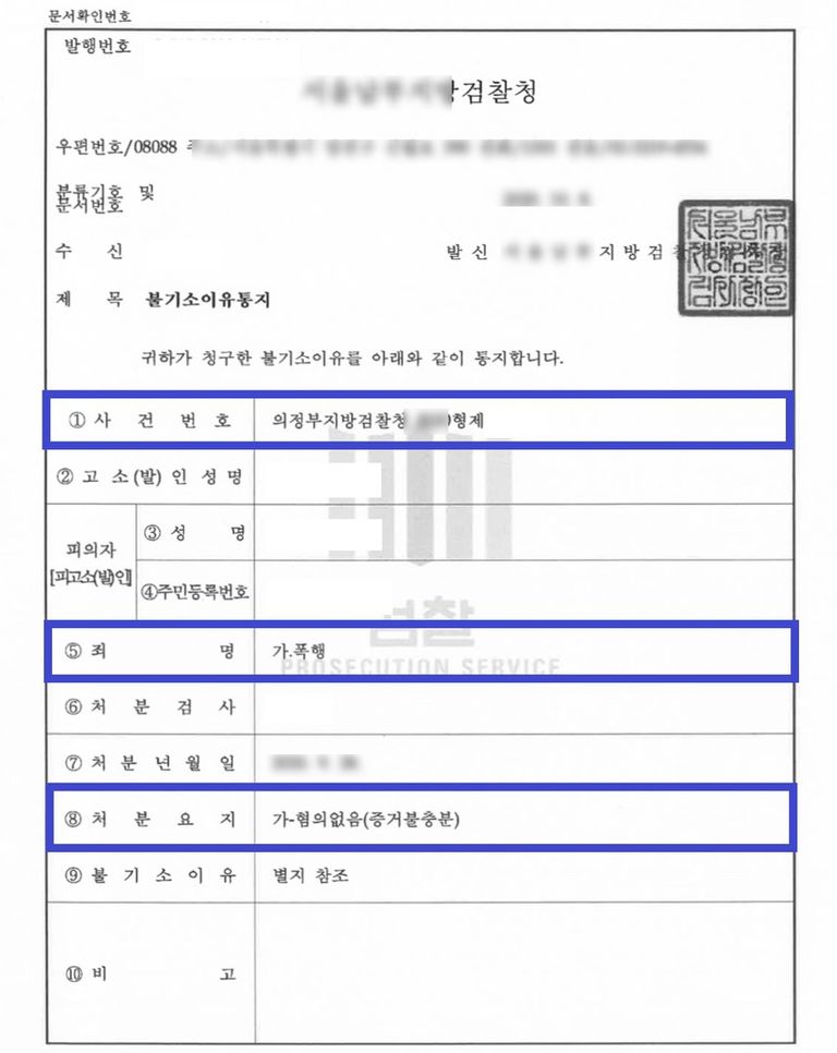 위와 같은 조력을 바탕으로, 결국 검사는 A군에게 '혐의없음'(무혐의)을 내렸습니다.