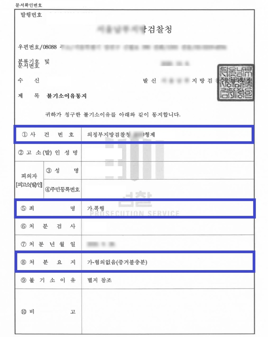 불기소이유통지서