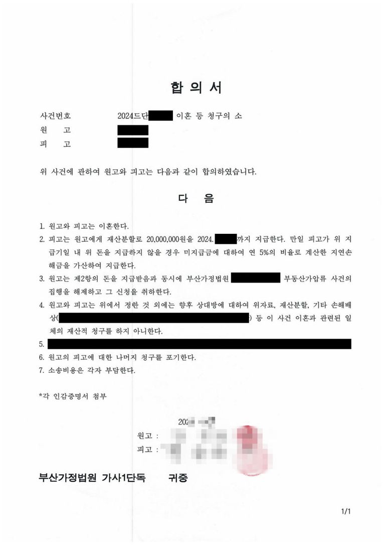 부산조정이혼변호사가 작성한 합의서 내용 그대로 조정조서가 작성되었습니다.
