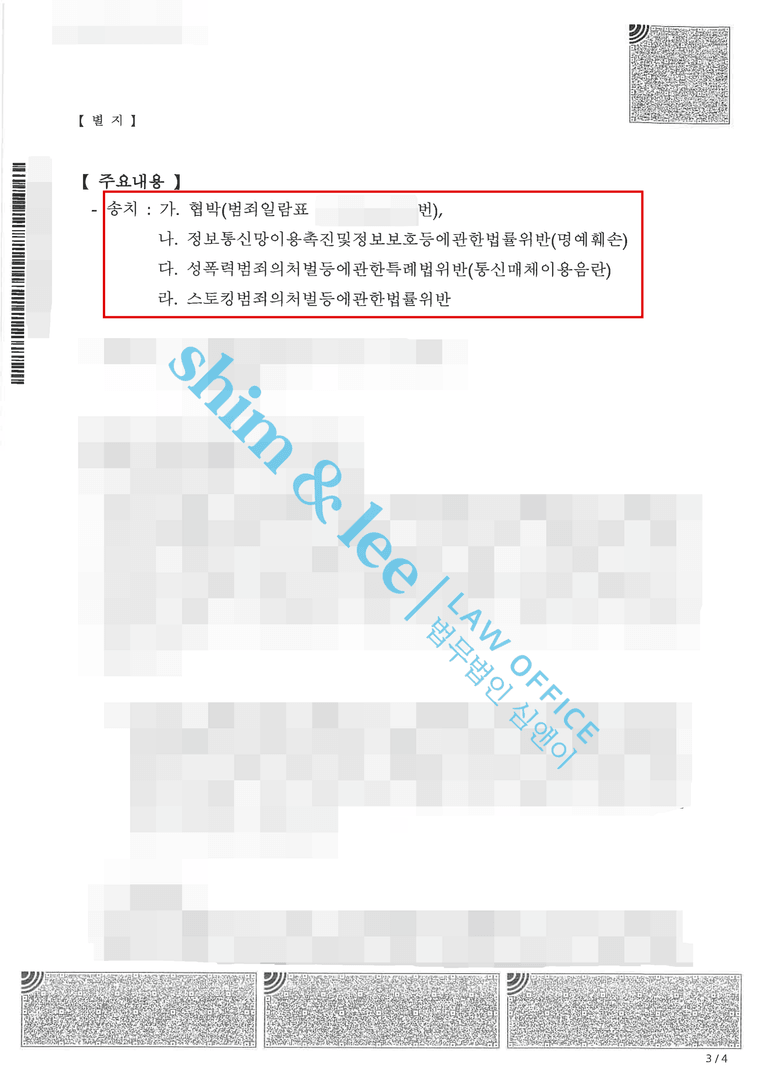 - 의뢰인은 전혀 사실이 아니며 이성적인 호감이 없다고 설명했지만, 가해자는 협박을 멈추지 않고, 더욱 집착하며 의뢰인을 지속적으로 괴롭혔습니다.