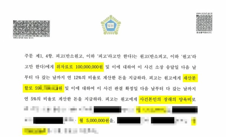 문제는 당사자인 남편이 매우 고소득의 사업자라는 점이었는데요. 이 때문에 아내는 위자료 1억 원, 재산분할 6억 정도, 양육비 500만 원을 요구하게 된 것이었습니다.