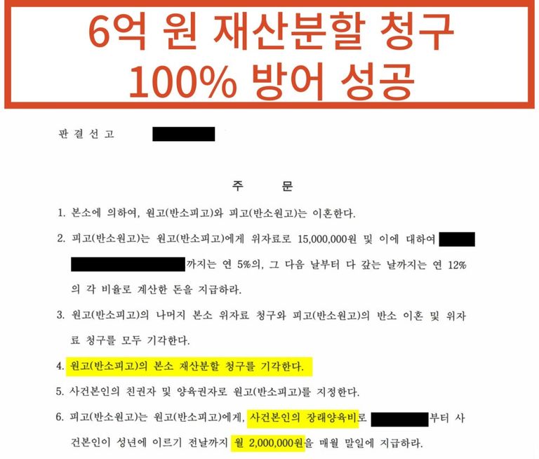 3. 결과: 아내의 6억 재산분할 청구 100% 전부 방어