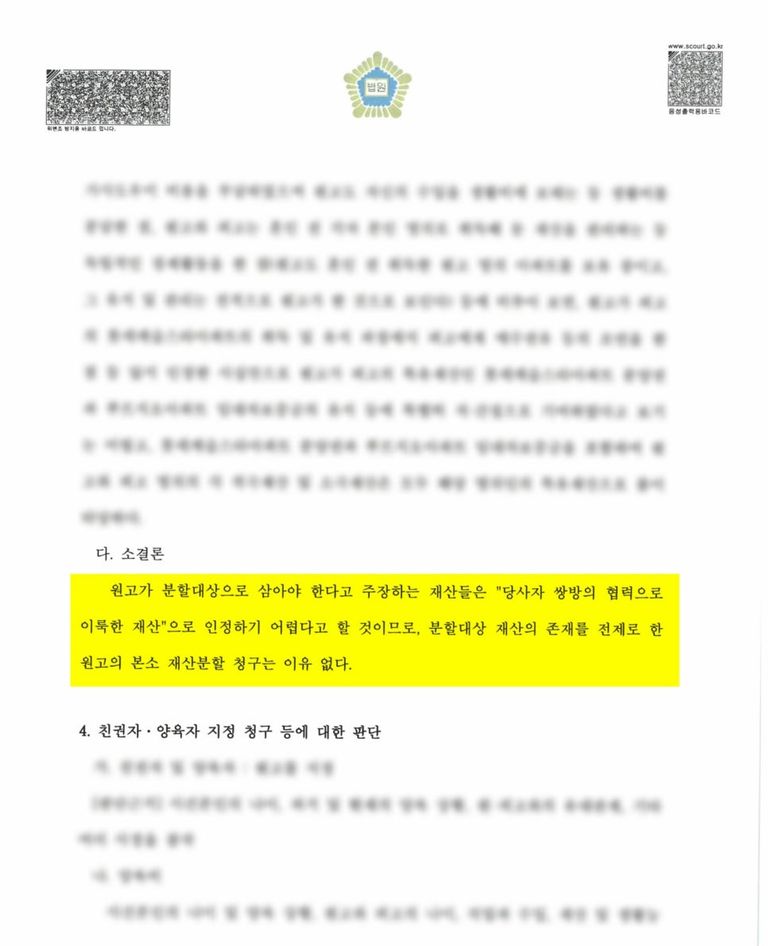 2) 다음으로, 이 사건에서 가장 중요한 부분은 재산분할이었는데요.