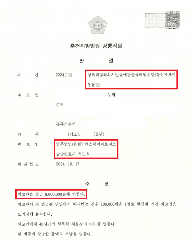 이러한 저의 조력을 바탕으로 A씨는 구공판은 검사는 징역형을 구형하고 재판부는 징역형을 선택하여 선고할 가능성이 높다는 의미이고, 특히 불과 1년 전에 통신매체이용음란죄로 벌금형 전력이 있었는데 짧은 기간에 또다시 통신매체이용음란죄를 저질렀을 뿐만 아니라 B양이 일면식도 없는 17세 미성년자였으므로, 예상치 못한 처벌을 받을 수도 있었음에도 불구하고 벌금형을 선고받음으로써 신상정보등록 대상이라는 엄청난 불이익을 피할 수 있었습니다.