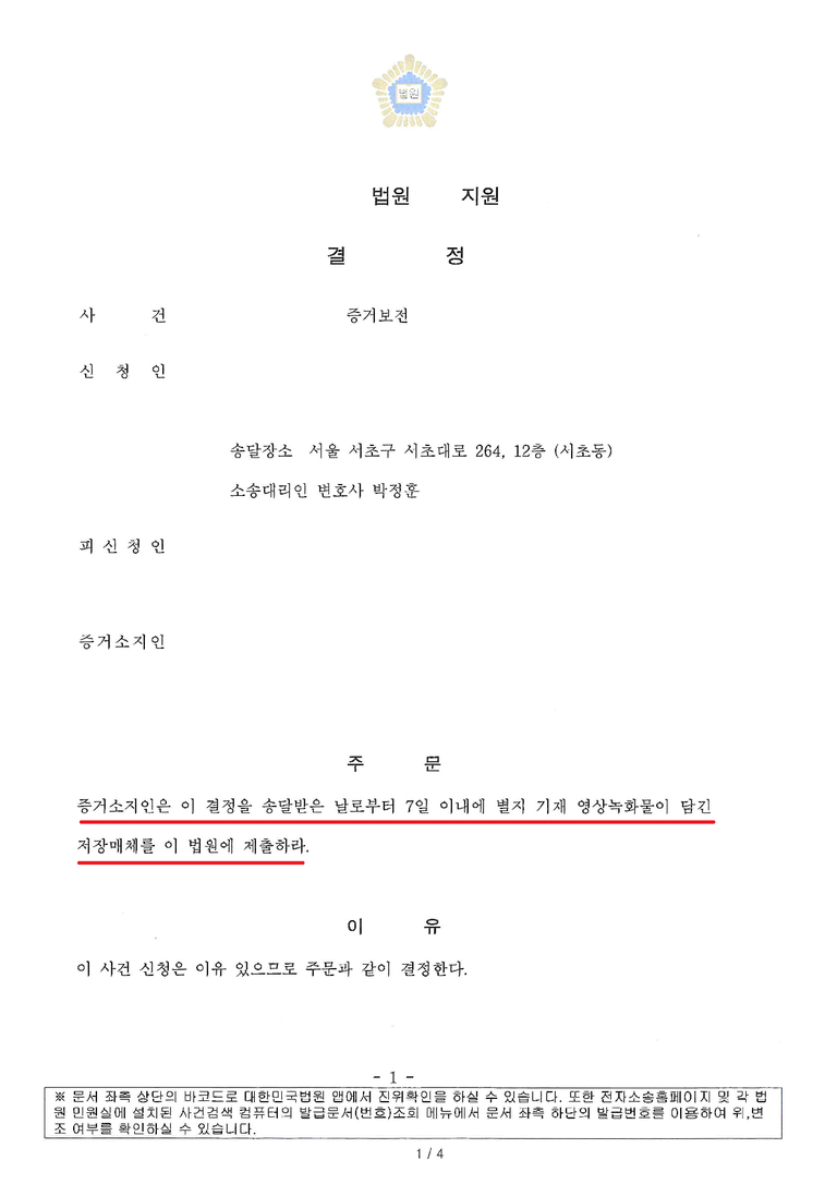4일만에 증거보전 결정을 받을 수 있었습니다.