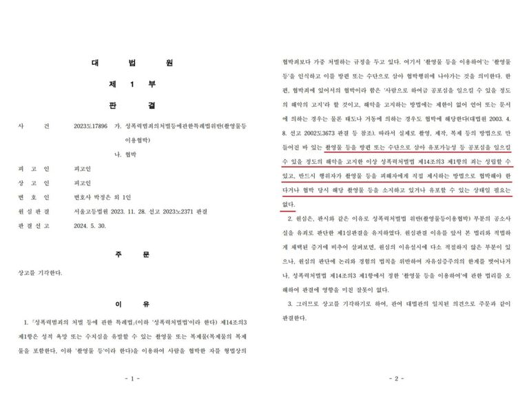 [성폭력범죄의 처벌 등에 관한 특례법 제14조의3 제1항에서 정한 ‘촬영물 또는 복제물(복제물의 복제물을 포함한다)을 이용한 협박의 의미 : 대법원 2024. 5. 30. 선고 2023도17896 판결]