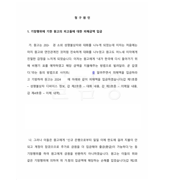 이 사건에서도 의뢰인은 로맨스스캠을 당하여 피고들에게 피해액을 입금하였고 이를 돌려받기 위해 저를 찾아오셨습니다.