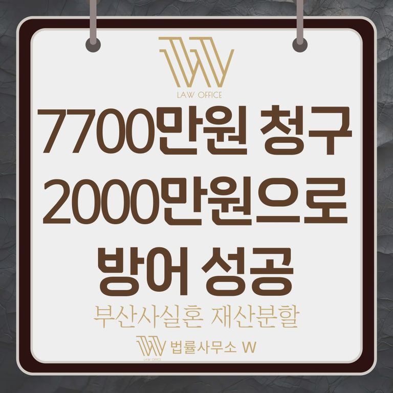 오늘은 부산 사실혼 재산분할과 관련해서 7,700만 원 청구를 2,000만 원으로 방어 성공한 사례를 말씀드렸는데요.