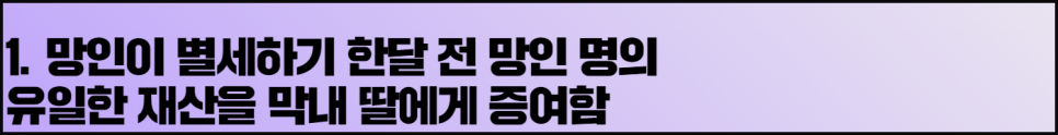 1. 망인이 별세하기 한달 전 망인 명의 유일한 재산을 막내 딸에게 증여함