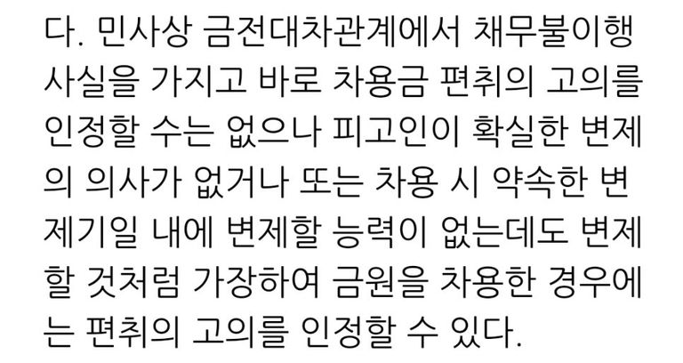 이렇게 두 가지의 설명과 입증을 통해 대여금 사기의 요건 자체를 구성하지 않는 점을 밝힌 것입니다.