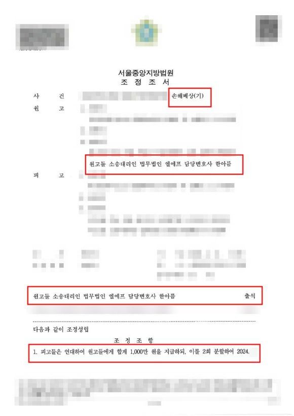 세 번의 조정을 통하여 조정조서를 받게 되었습니다.