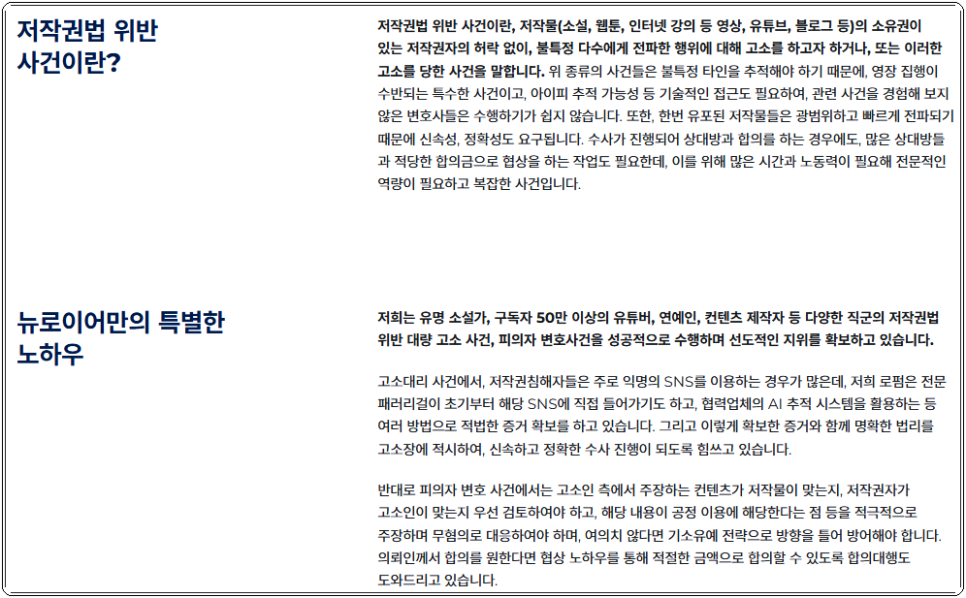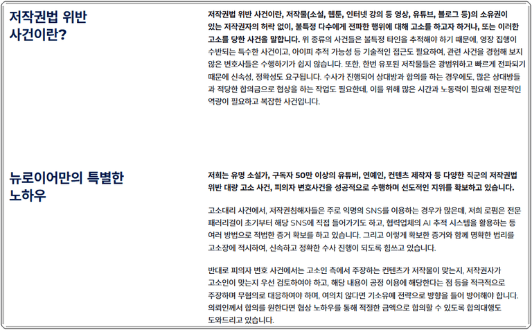 뉴로이어 저작권 지식재산권 팀 성공사례 중 일부