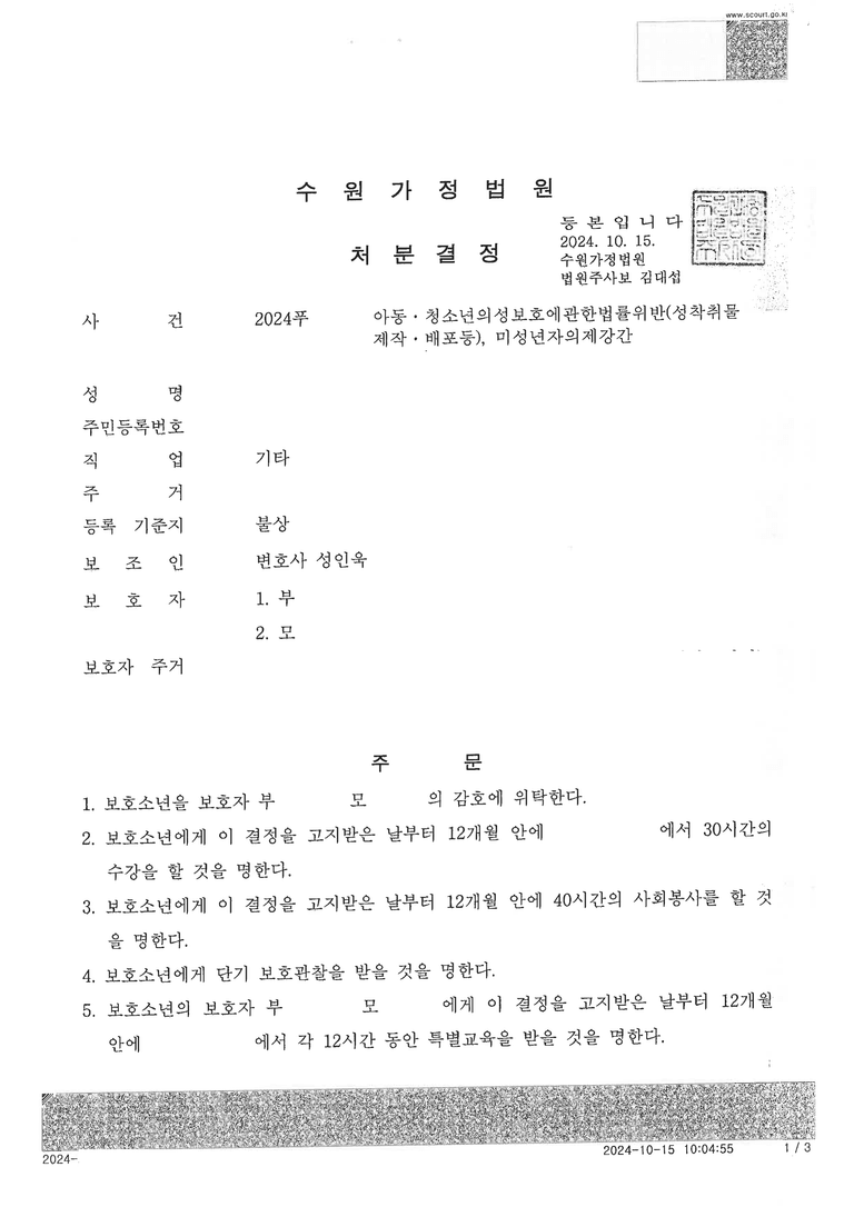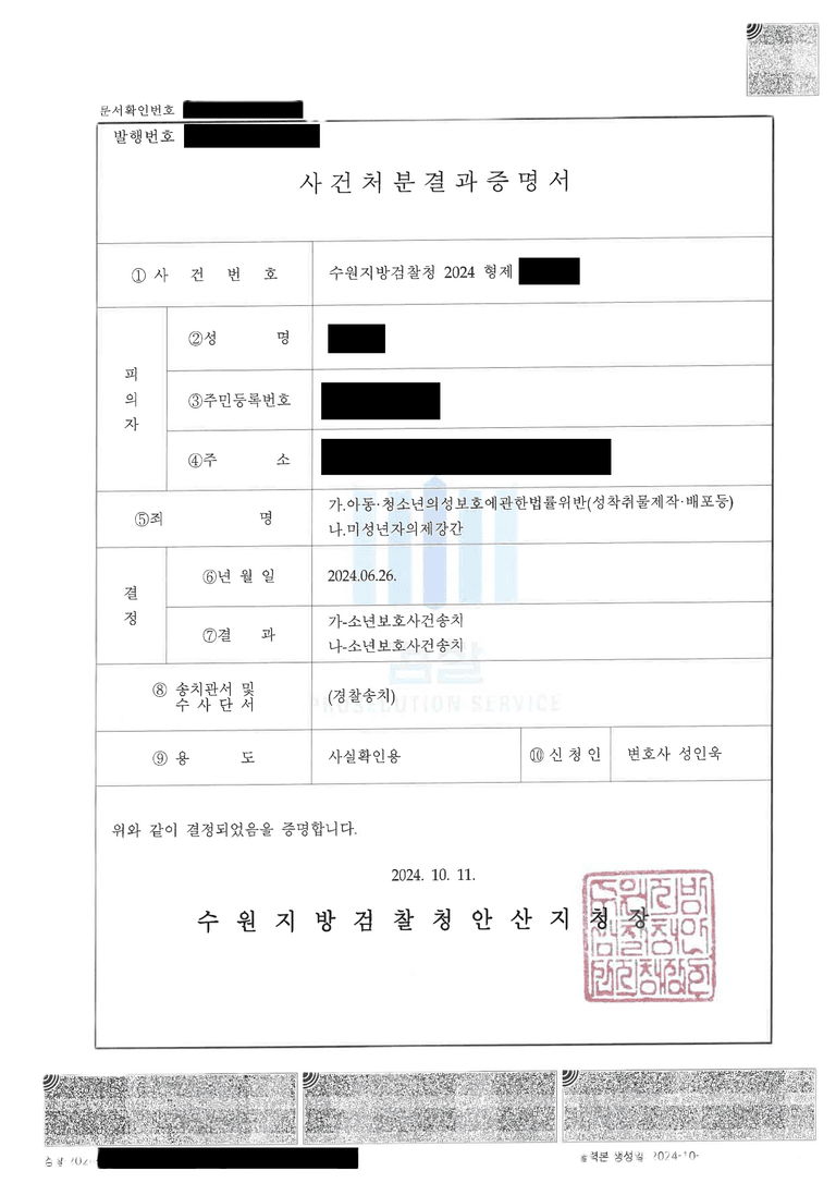 성착취물제작 미성년자의제강간 소년보호사건 송치 사례 소개