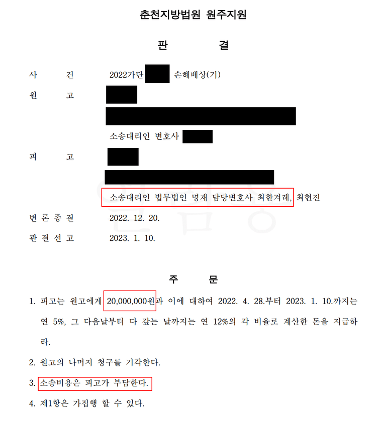 소송비용은 피고가 부담하라는 판결이 나옵니다.